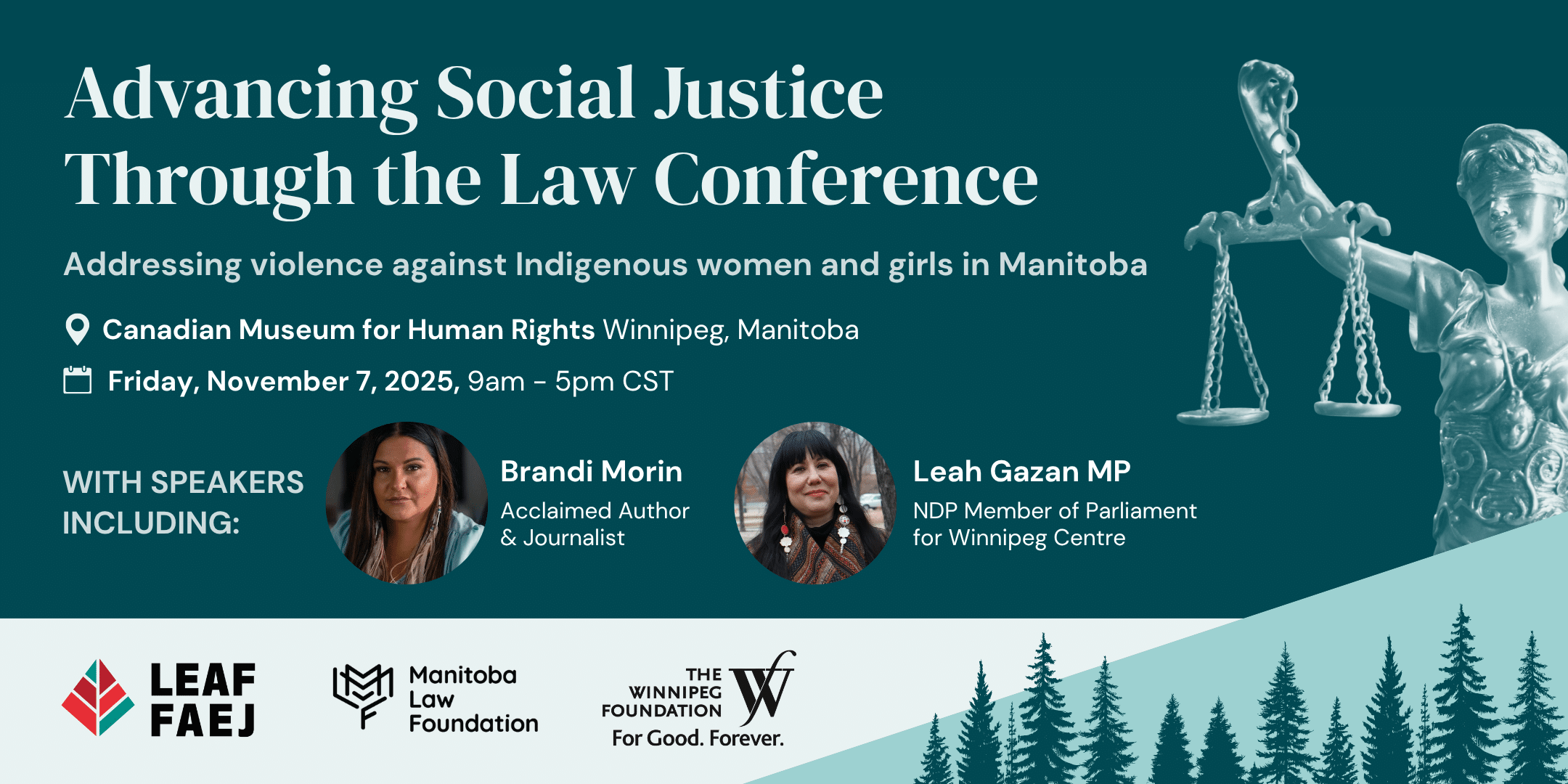 Thanks to our sponsors, the Manitoba Law Foundation and the Winnipeg Foundation, for providing funding to make this conference possible. We are also grateful for the support of our volunteer-run local branch, LEAF Winnipeg, and members of our conference planning advisory committee.