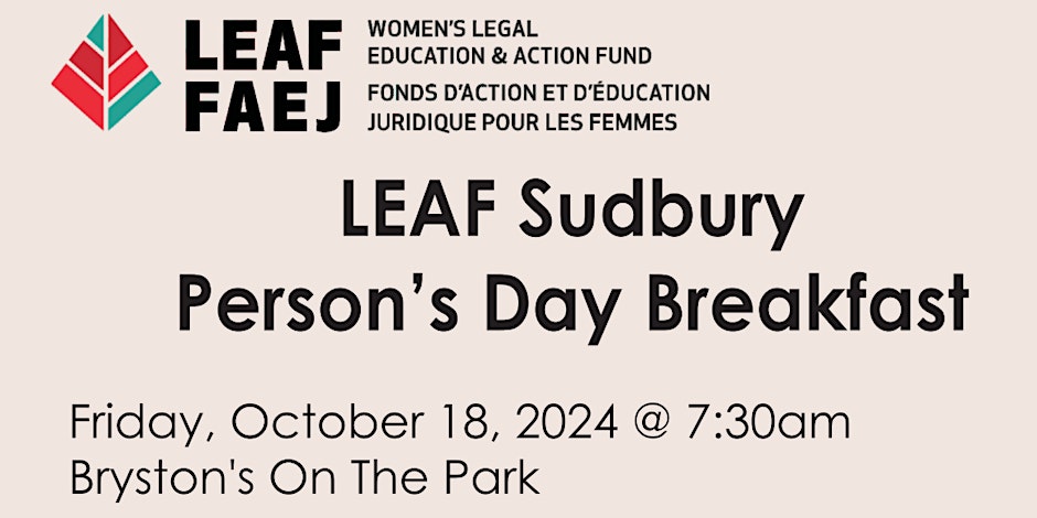 LEAF Edmonton will hold their annual Persons Day Breakfast on Monday, October 29, 2012.
